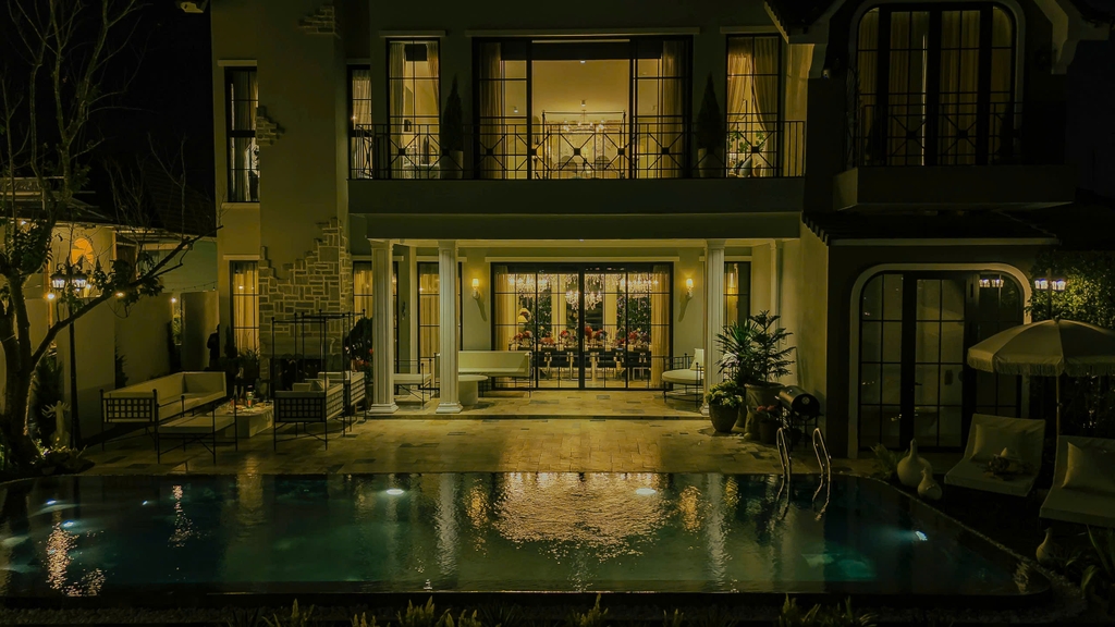 * Tiện ích gồm bể bơi vô cực hệ thống lọc muối điện phân, phòng xông hơi ướt, phòng karaoke, grand piano, đọc sách, bida, ghế massage.