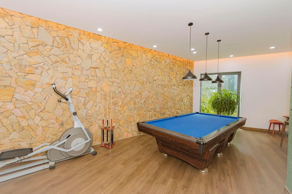 - Tầng hầm: 4 phòng (1 đôi + 2 đơn + 1 dorm + 3 wc riêng trong phòng) + khách +bếp +bàn Bida, Máy tập, phòng cà phê,...