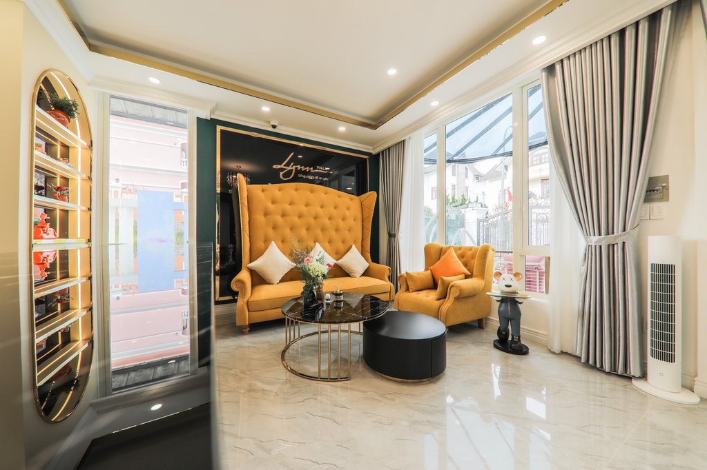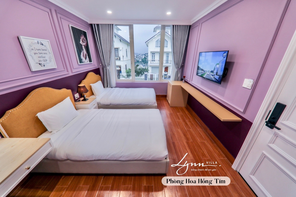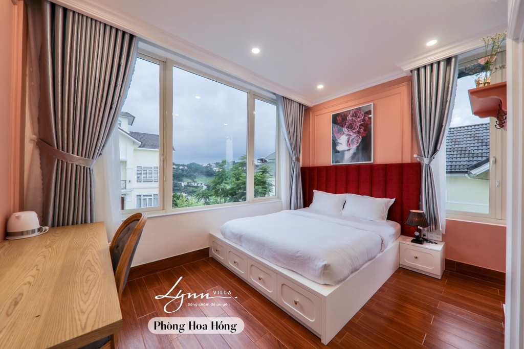 Biệt thự rộng đến 500m2, chia ra làm 7 phòng ngủ, điểm đặc biệt là từng phòng đều được mang một màu sắc khác nhau của loài hoa hồng: hồng, đỏ, xanh, tím, vàng, cam, trắng và mang một ý nghĩa riêng biệt. Tất cả phòng ngủ đều được thiết kế tỉ mỉ, toilet riêng biệt từng phòng, và trang bị đầy đủ các thiết bị, vật dụng như: tivi, máy điều hoà, máy nước nóng, wifi, tủ treo quần áo, bàn ghế, tủ lạnh,... Cửa ra vào được lắp đặt bằng thẻ từ, mang đến độ bảo mật cao và riêng tư cho du khách. Sở hữu vị trí đắc địa bậc nhất Đà Lạt, từ Lynn Villa du khách có thể dễ dàng di chuyển đến các địa điểm như: dinh Bảo Đại, Thiền Viện Trúc Lâm, Hồ Tuyền Lâm và đặc biệt chỉ mất 10 phút để đến trung tâm mua sắm Chợ Đà Lạt.