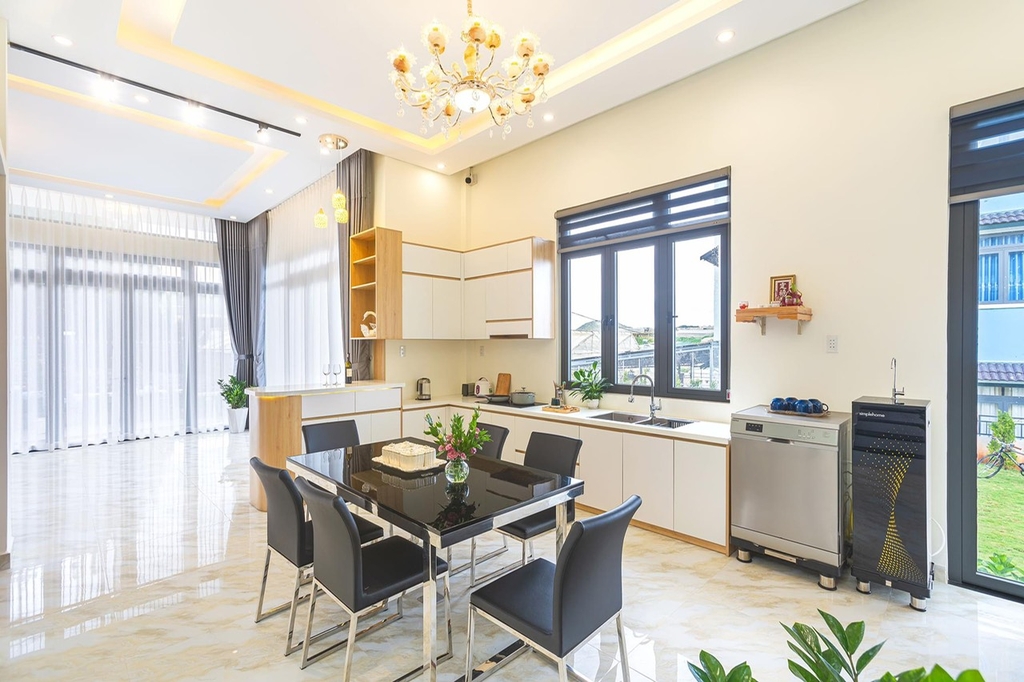 VILLA đều đầy đủ vật dụng cơ bản nấu ăn, sinh hoạt như khăn tắm, dầu gội…, bàn ghế, bếp đầy đủ vật dụng như nồi, xoong, chảo chén bát, ly uống nước, đũa, muỗng.