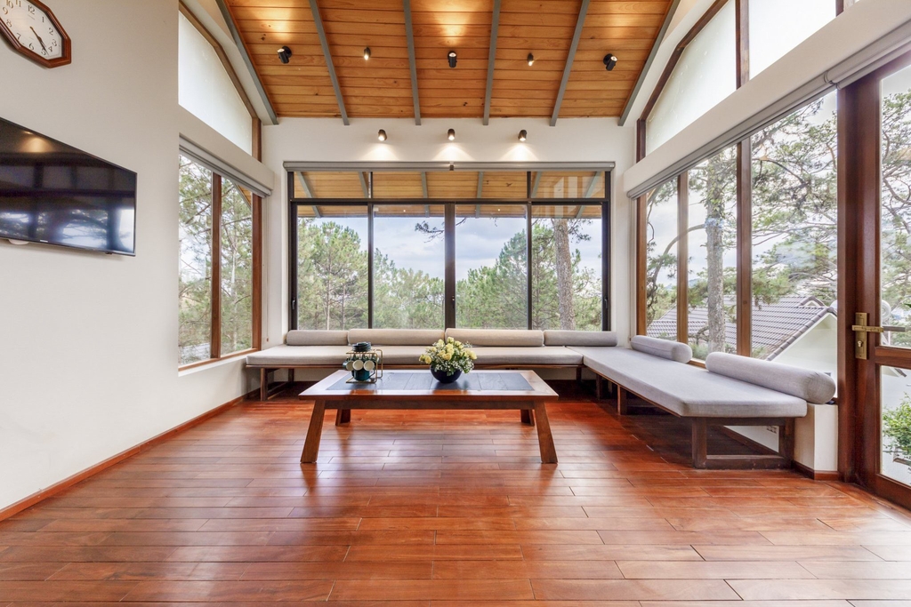Villa là 1 căn biệt thự được xây dựng theo kiến trúc Pháp, trong khu biệt thự yên tĩnh, an ninh, nhìn ra view đồi thông. Đẹp từ bên ngoài lẫn bên trong. Trước nhà sẽ có 1 thảm cỏ xanh mướt mềm mại đón ta vào nhà, ngồi sân này làm tiệc BBQ thì chill hết nấc.