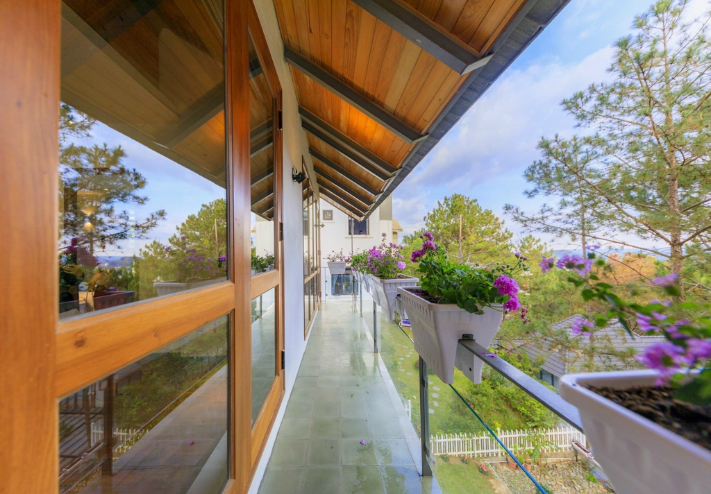 Villa được thiết kế với không gian mở tận dụng lợi thế view cao đón nắng và gió tự nhiên rất trong lành để ban công bạn có thể ngắm nhìn được cảnh đẹp hùng vĩ của thiên nhiên và con người dựng nên.