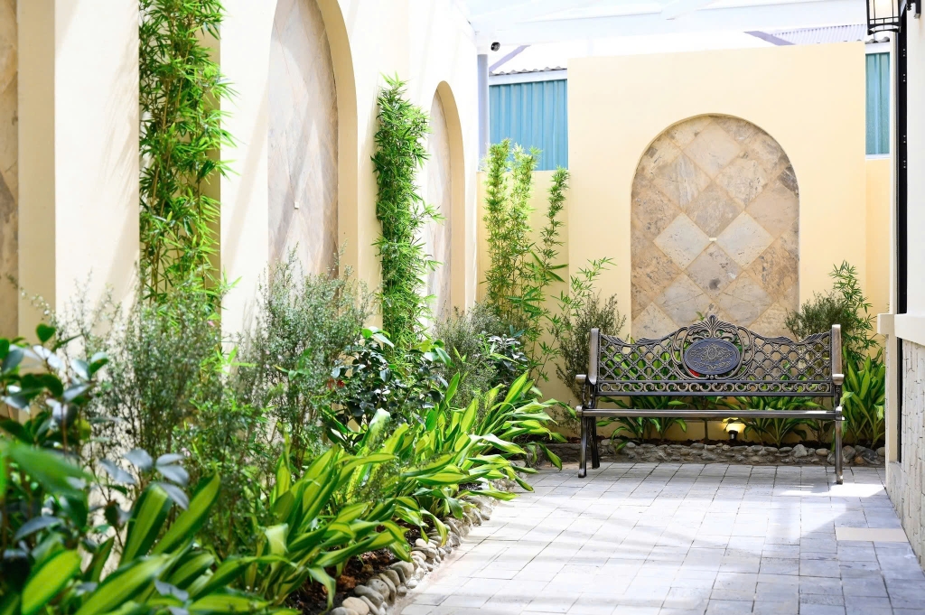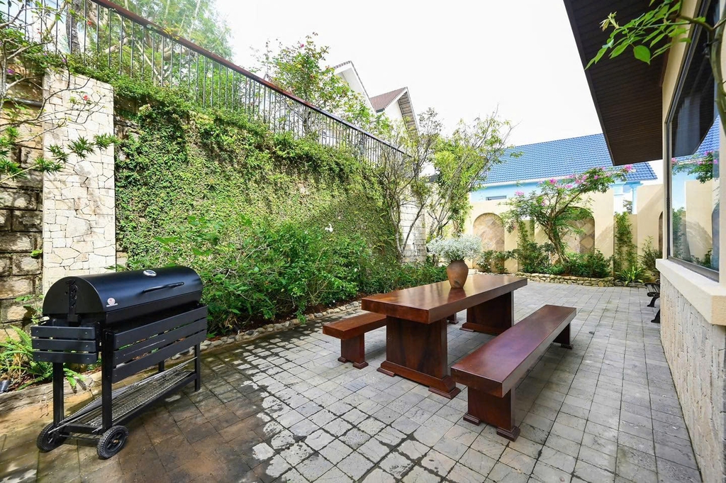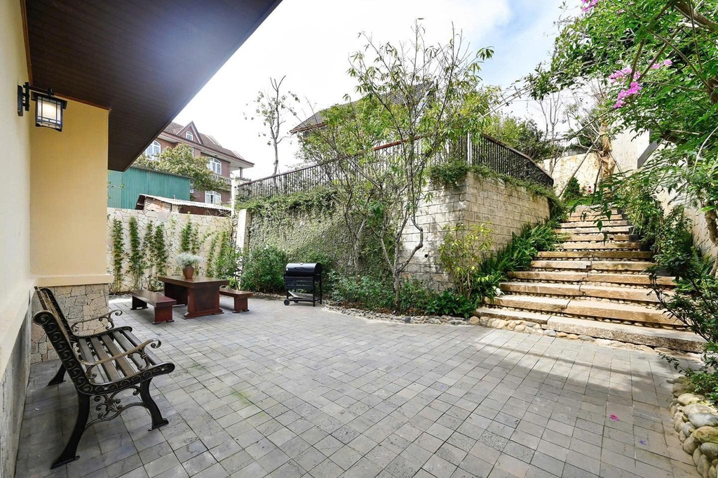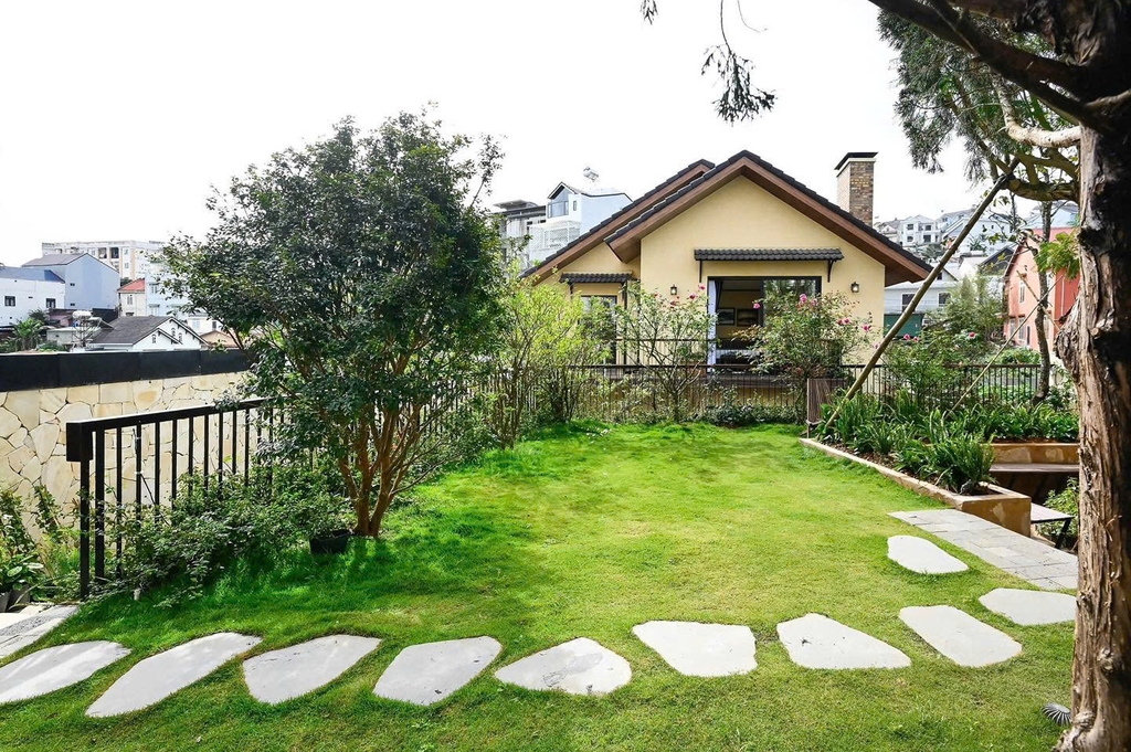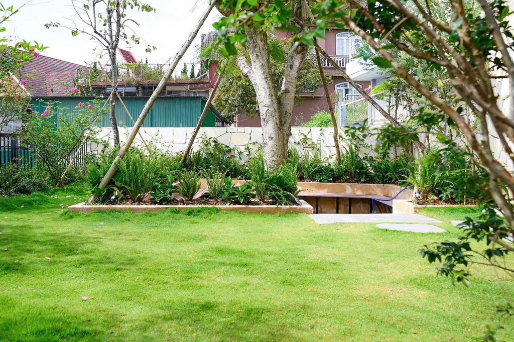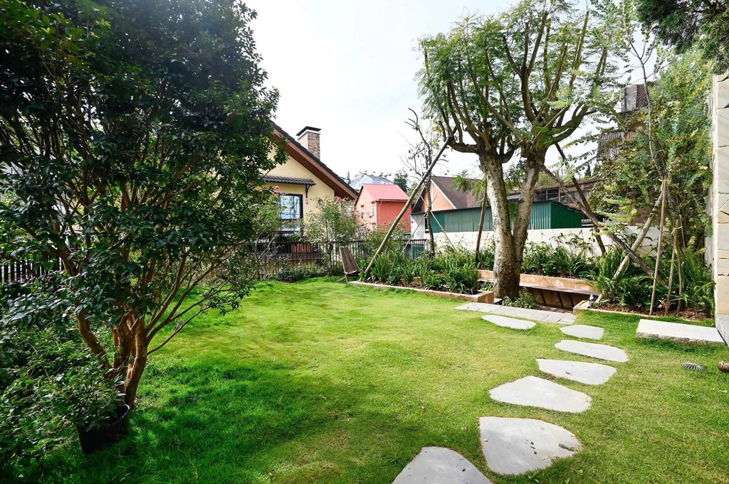 - Sân vườn rộng rãi: Thiết kế sân vườn xanh mát, được bao quanh bởi cây cối tự nhiên. Những chiếc ghế gỗ xinh xắn đặt giữa khu vườn, là nơi lý tưởng để đọc sách, ngắm cảnh hoặc nhâm nhi một tách cà phê sáng. Là không gian lý tưởng để bạn thư giãn, tổ chức tiệc BBQ ngoài trời hoặc đơn giản là tận hưởng không khí trong lành của Đà Lạt.