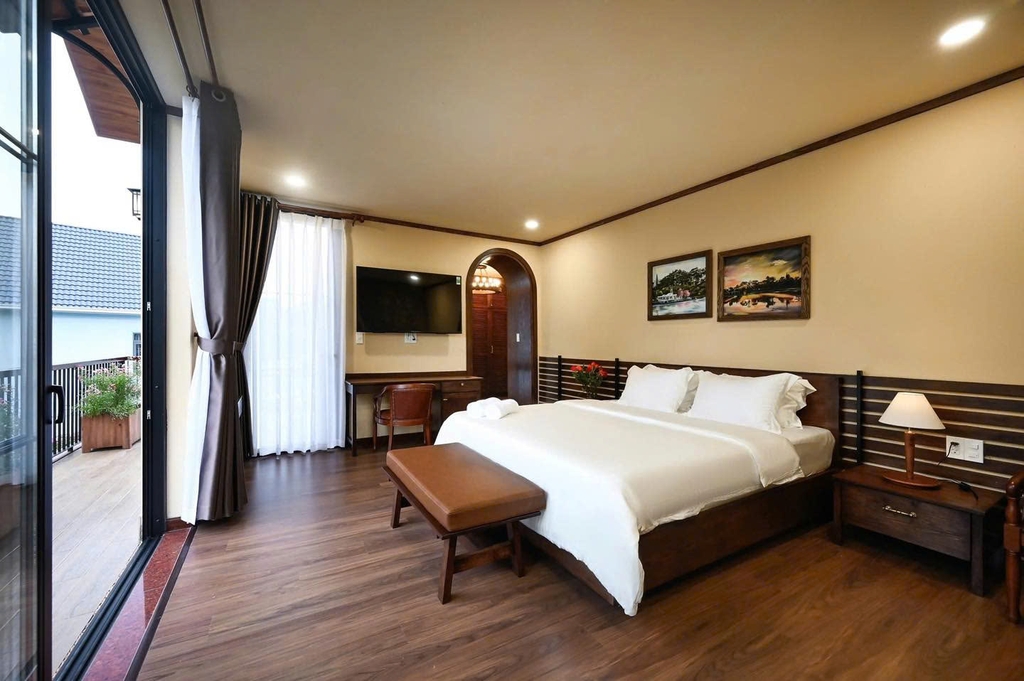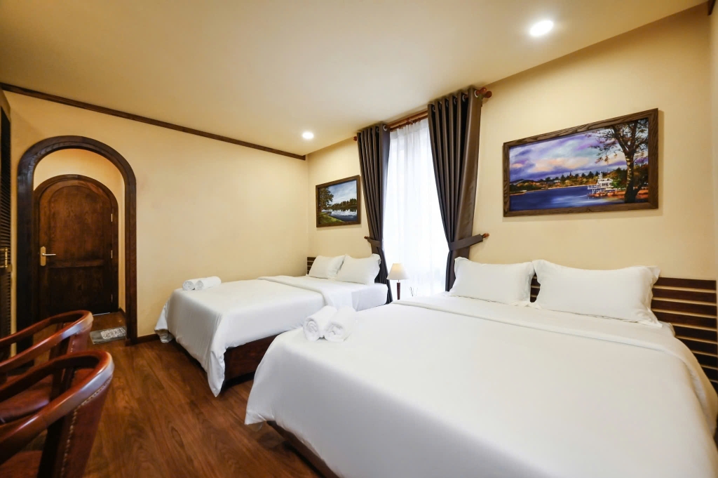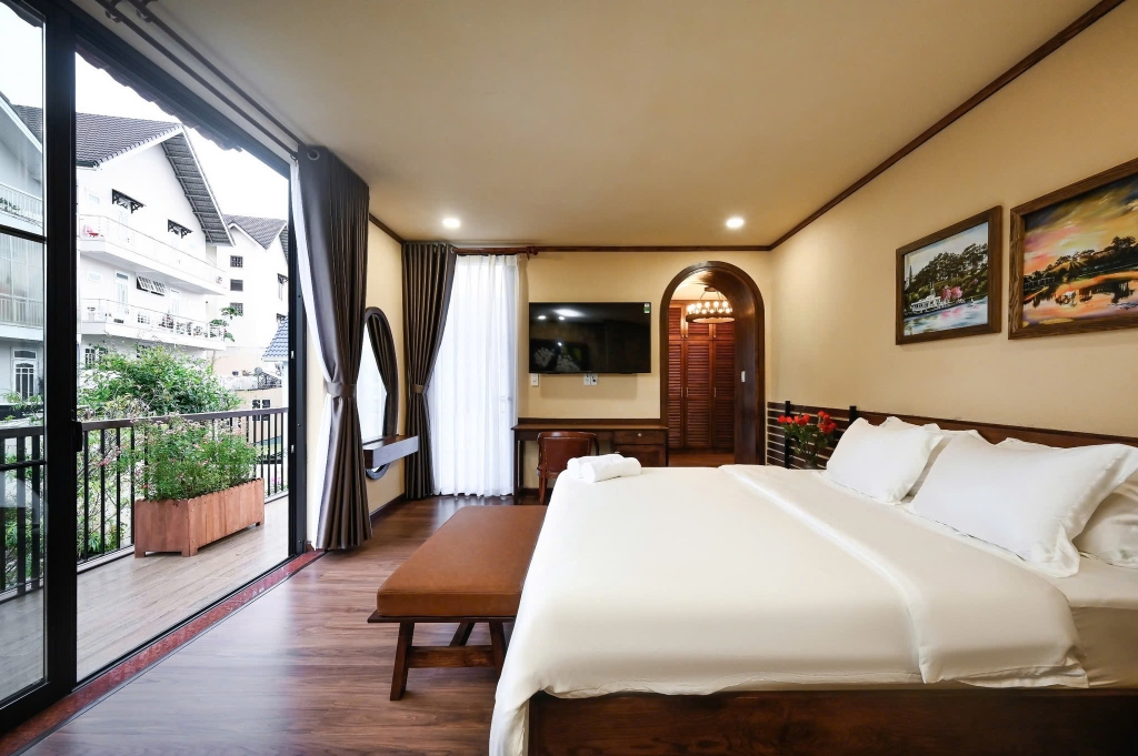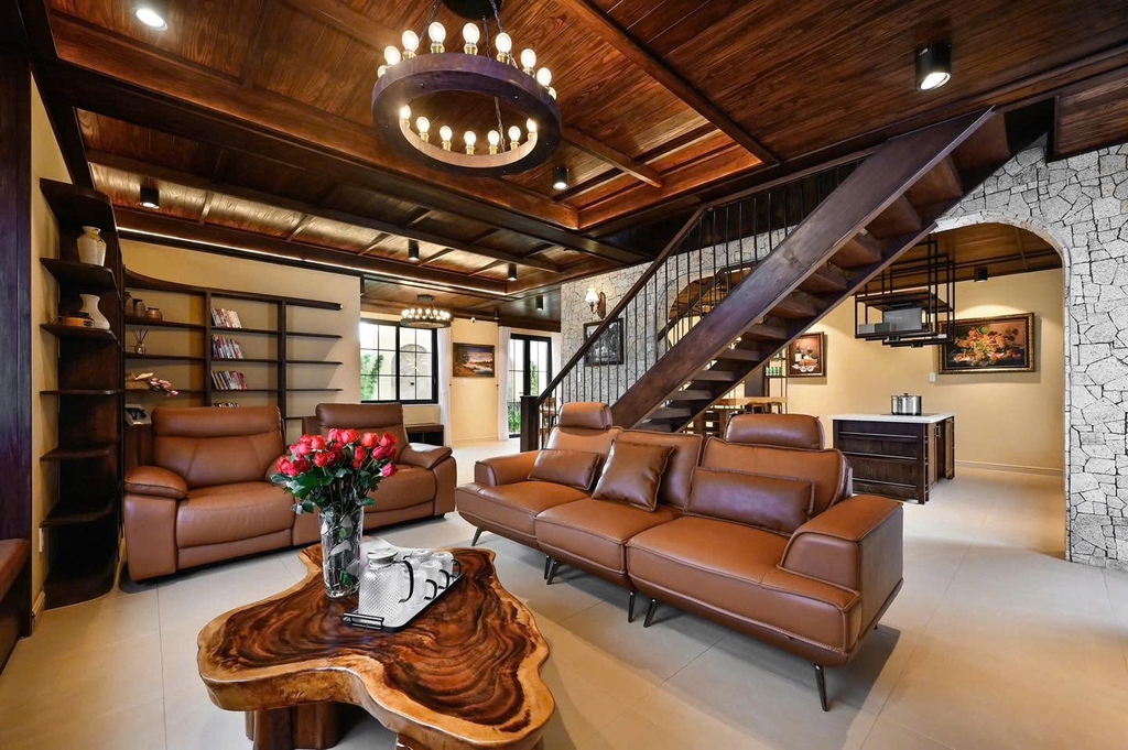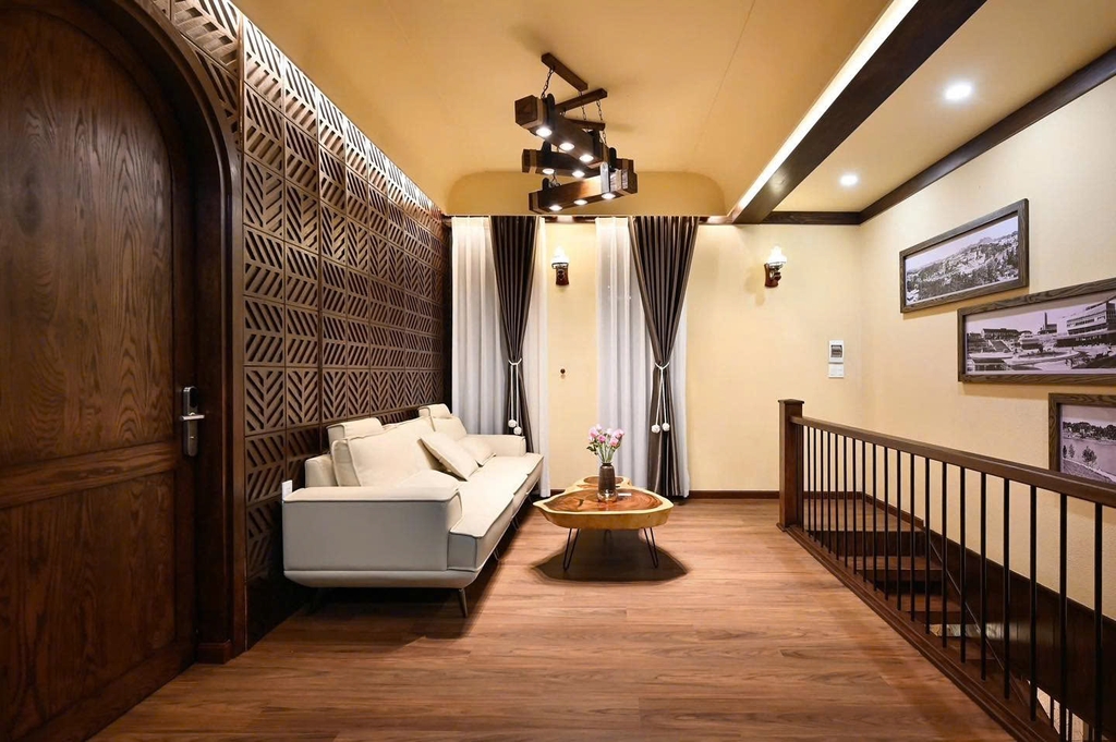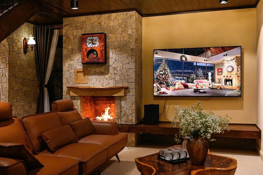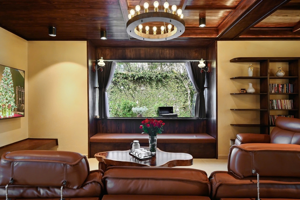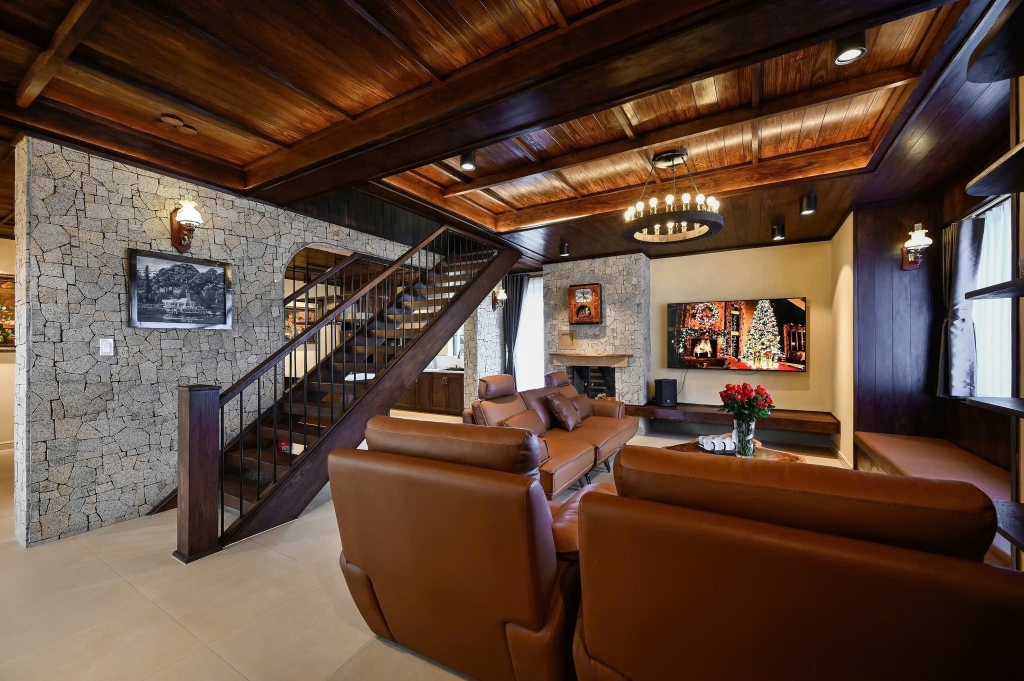 - 1 phòng khách sang trọng: Trang bị tiện ích hiện đại, dàn karaoke chất lượng cao là nơi lý tưởng để bạn cùng gia đình, bạn bè quây quần, trò chuyện và thư giãn sau những chuyến đi khám phá Đà Lạt.