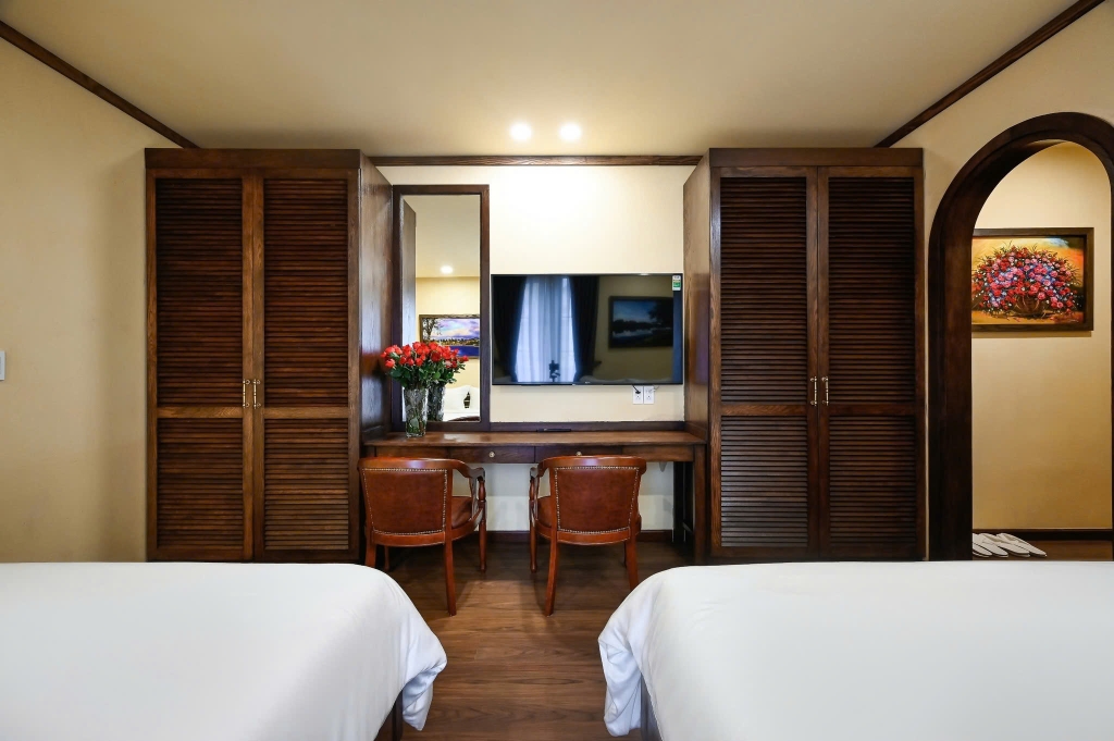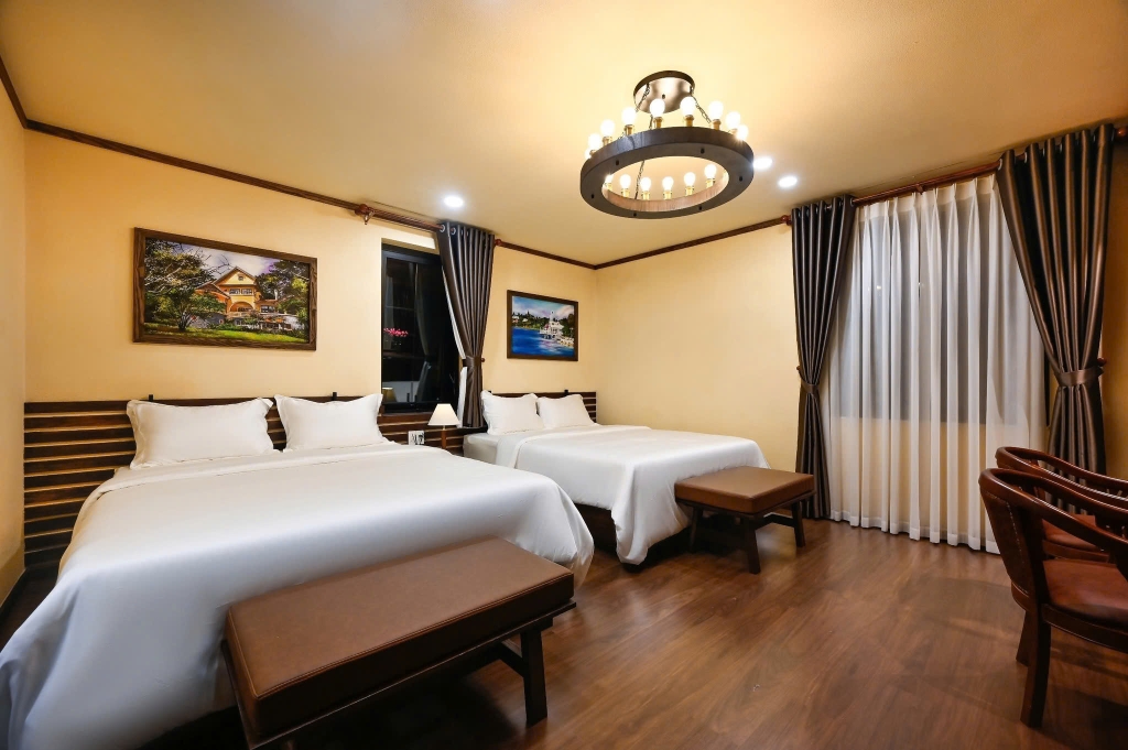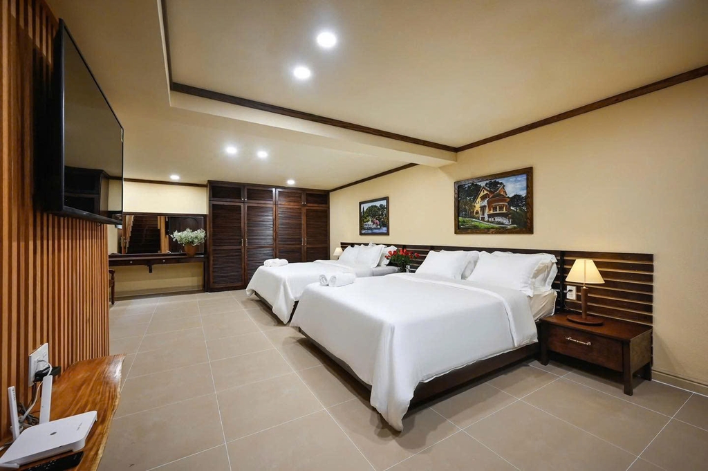 - 5 phòng ngủ thoải mái: 2 phòng đơn và 3 phòng đôi (tất cả giường kingsize). Mỗi phòng ngủ được thiết kế tinh tế, đảm bảo mang đến giấc ngủ ngon và sự riêng tư cho mỗi thành viên trong gia đình.