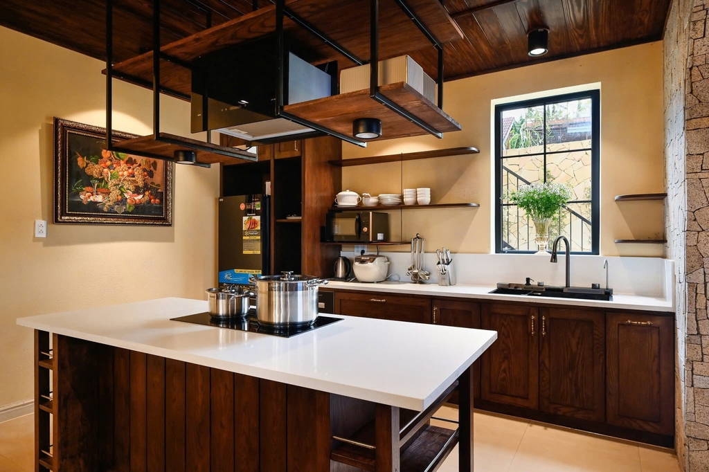 - 1 phòng bếp đầy đủ tiện nghi: Với đầy đủ dụng cụ và thiết bị nấu nướng, giúp bạn có thể dễ dàng chuẩn bị những bữa ăn ngon cho gia đình hoặc bạn bè.